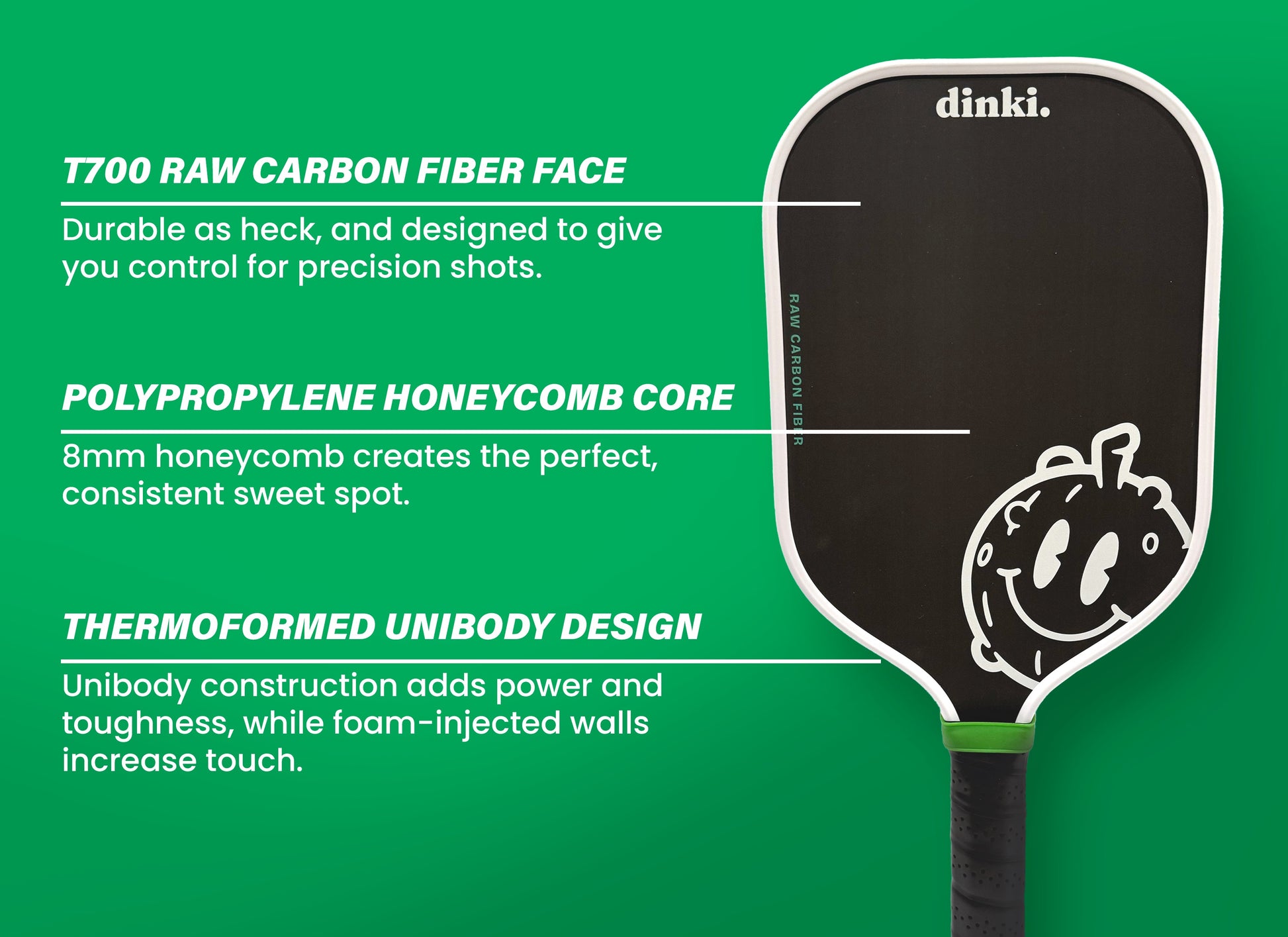 - T700 raw carbon fiber face supports control and spin.
